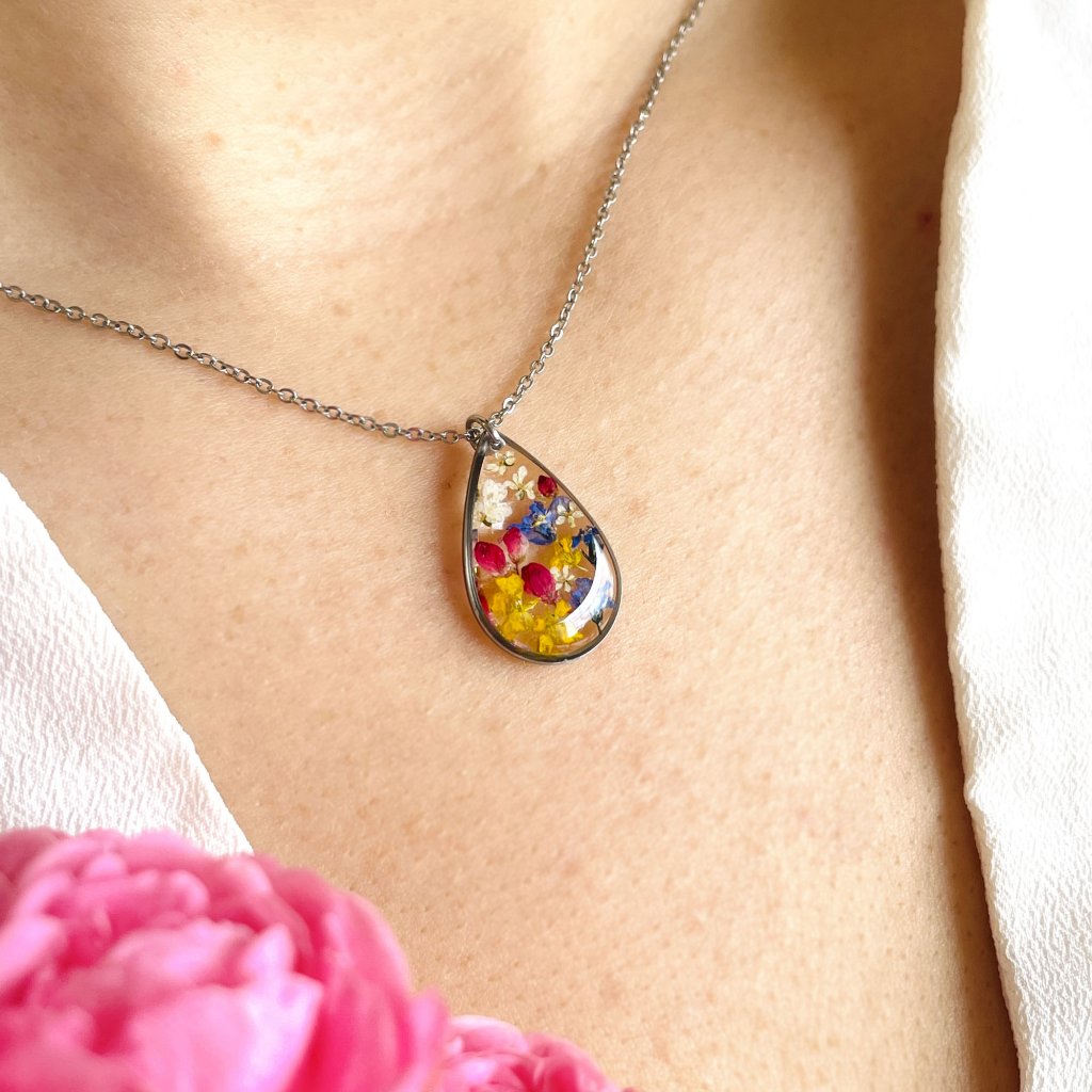 Všechny květiny sbírám ručně na beskydských lukách a kopcích, ale také na jiných místech České republiky. Poté květiny suším, zalévám křišťálovou pryskyřicí, ručně brousím a leštím. Na výrobě šperků mám ráda celý proces, od samotného začátku, kdy květinu utrhnu, až do konce, kdy květinové dílo vložím do dárkové krabičky, kde čeká na vílu, které vykouzlí úsměv na tváři.