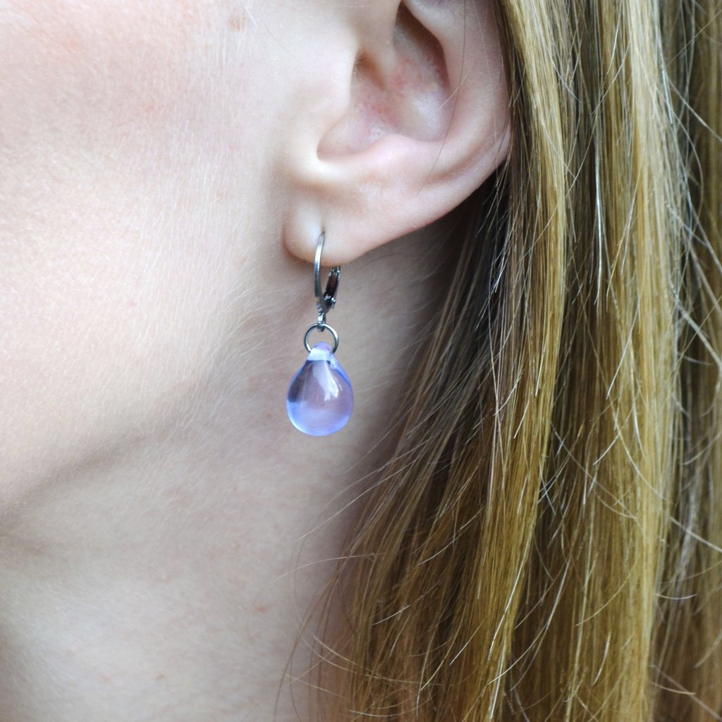 Nechte se okouzlit těmito učně vyrobenými náušnicemi z českého skla a chirurgické oceli. Světle fialový odstín a tvar kapky vás přenesou do světa přírodní krásy a řemeslného umění. Každý kousek je jedinečný, vytvořený s láskou a péčí.