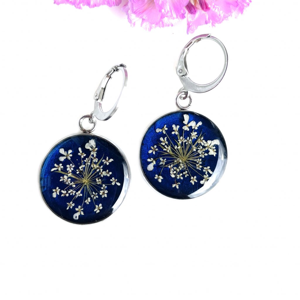 Náušnice, v kterých se ukrývají pravé, ručně sbírané, kvítky mrkve obecné, jsou vyrobeny z pravých květin a křišťálové pryskyřice. Kov je kvalitní chirurgická ocel. Každý šperk je naprosto jedinečným dílem.