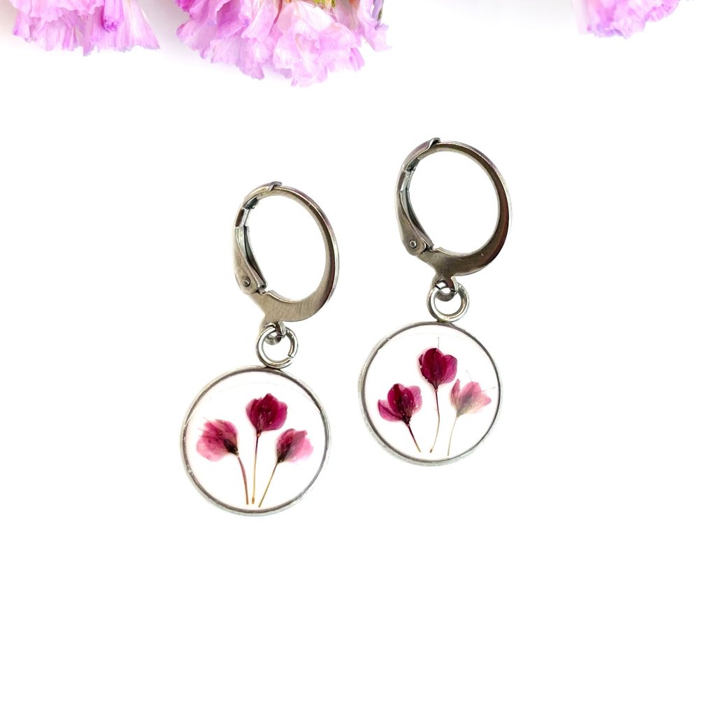 Jemné romantické náušnice jsou vyrobeny z pravých kvítků rdesna a z křišťálové pryskyřice. Kov je kvalitní chirurgická ocel. Každý šperk je naprosto jedinečným dílem.
