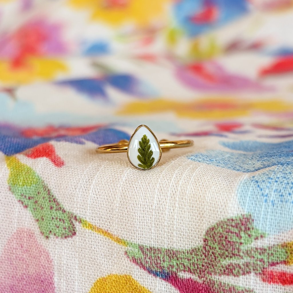 Prsten, v kterém je ukryto kouzlo beskydských luk. Šperk je vyroben z opravdového květu a z křišťálové pryskyřice. Kov je pozlacená chirurgická ocel. Každý šperk je naprosto jedinečným dílem.