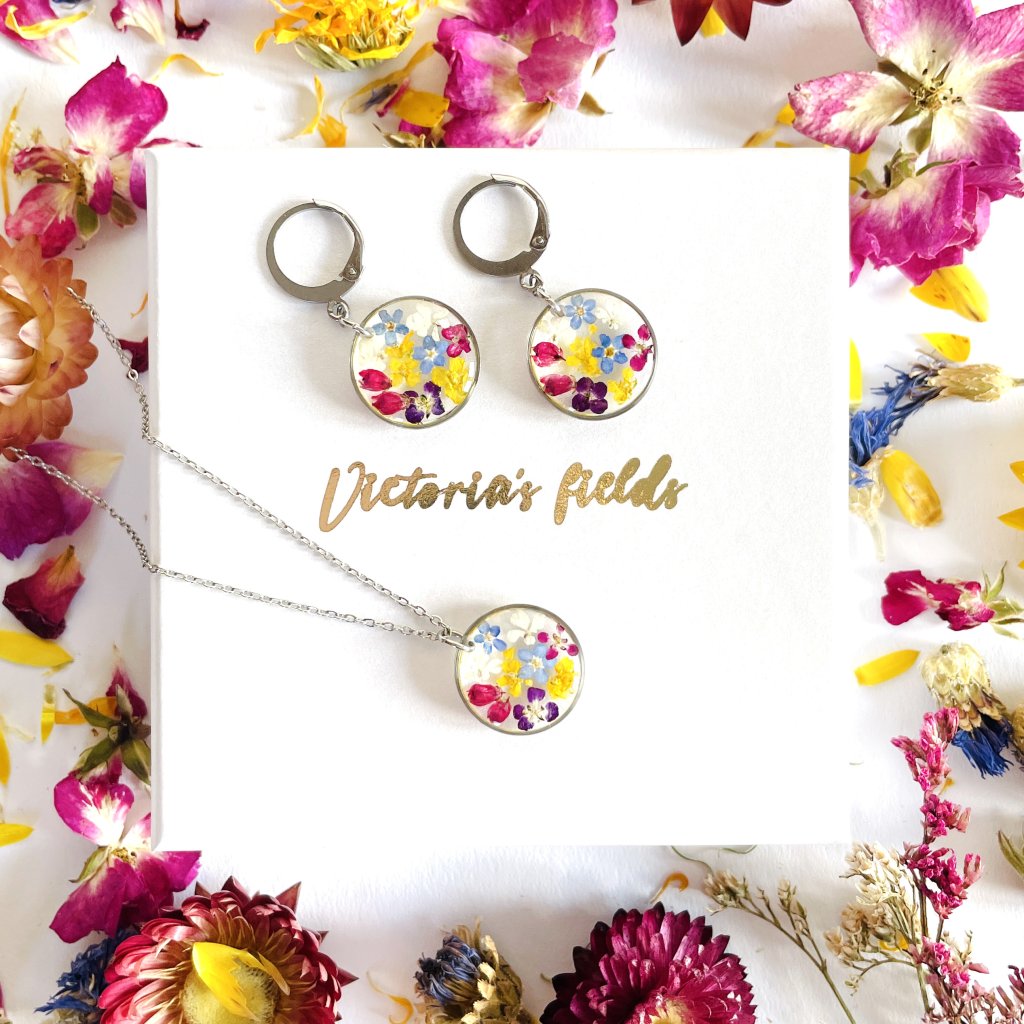 Všechny květiny sbírám ručněna beskydských lukách a kopcích, ale také na jiných místech České republiky. Poté květiny suším, zalévám křišťálovou pryskyřicí, ručně brousím a leštím. Na výrobě šperků mám ráda celý proces, od samotného začátku, kdy květinu utrhnu, až do konce, kdy květinové dílo vložím do dárkové krabičky, kde čeká na vílu, které vykouzlí úsměv na tváři.