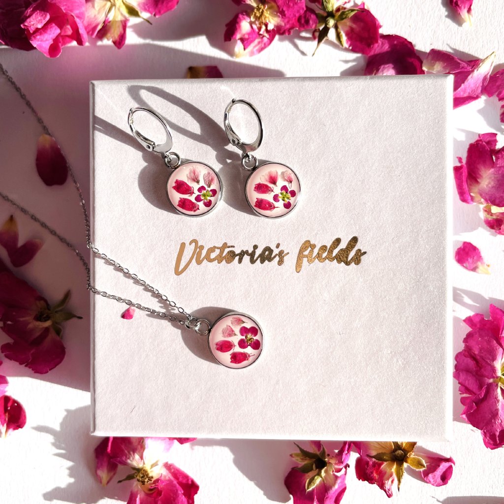 Všechny květiny sbírám ručněna beskydských lukách a kopcích, ale také na jiných místech České republiky. Poté květiny suším, zalévám křišťálovou pryskyřicí, ručně brousím a leštím. Na výrobě šperků mám ráda celý proces, od samotného začátku, kdy květinu utrhnu, až do konce, kdy květinové dílo vložím do dárkové krabičky, kde čeká na vílu, které vykouzlí úsměv na tváři.