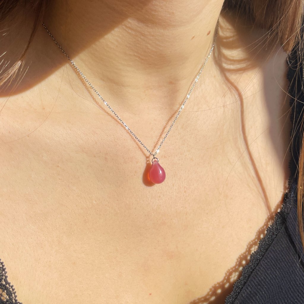 Nechte se okouzlit touto ručně vyrobenou sadou z českého skla a chirurgické oceli, která obsahuje náhrdelník a visací náušnice. Růžový odstín a tvar kapky vás přenesou do světa přírodní krásy a řemeslného umění. Každý kousek je jedinečný, vytvořený s láskou a péčí.